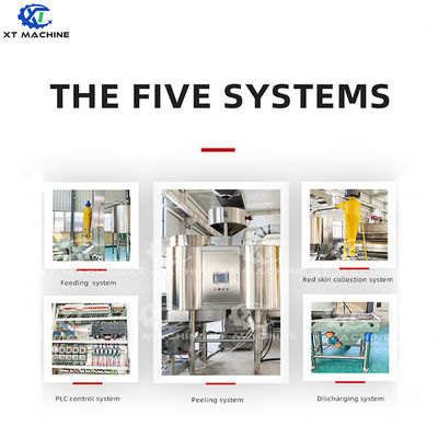 বাদাম ব্লাঞ্চিং রুম একটি বিশেষ গহ্বর কাঠামো গ্রহণ করে, এবং ব্লাঞ্চিং হোস্ট স্বয়ংক্রিয়ভাবে ব্লাঞ্চিং প্রক্রিয়া সম্পন্ন করার জন্য প্রোগ্রাম নির্দেশাবলী অনুযায়ী ফুঁ এবং ছেড়ে দেয়।ব্লেঞ্চিংয়ের পর বাদামের পৃষ্ঠ ক্ষতিগ্রস্ত হয় না, পিলিং রেট 98% পর্যন্ত এবং বাদামের সামগ্রিক ব্ল্যাঞ্চিং রেট 85% পর্যন্ত।