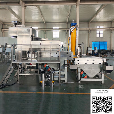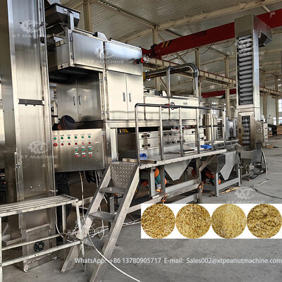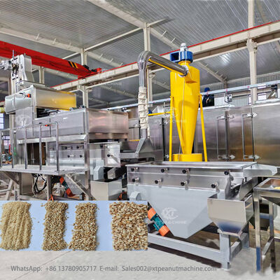 মেশিনটিতে দুটি-পর্যায়ের কাটার প্রক্রিয়া রয়েছে। বিভক্ত করা সাদা চীনাবাদাম উল্লম্ব কনভেয়ারের মাধ্যমে সরবরাহ করা হয় এবং প্রথমে মোটা দানায় কাটা হয়, তারপর দ্বিতীয় পর্যায়ে প্রক্রিয়াকরণ করে মিশ্রণ গ্রানুলেটর তৈরি করা হয়। একটি সমন্বিত ভাইব্রেটিং সিফটার আউটপুটটিকে চারটি অভিন্ন স্পেসিফিকেশনে সাজায়: 5-8 জাল, 8-10 জাল, 10-12 জাল, 12 জালের নীচের উপাদান পাউডার টেক্সচার অর্জন করে।