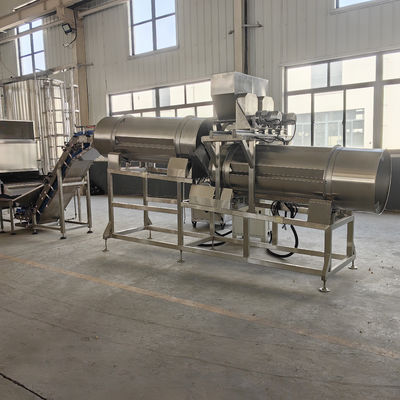 This is a fully automatic production line for coating, roasting, seasoning, drying,cooling, The automatic coating machine replaces the traditional manual coating. This line not only enhances efficiency but also guarantees the quality of the final products. The automated process ensures that each peanut or cashew nut is uniformly coated, Maintaining the highest standards of taste and texture. Moreover, the machine’s design minimizes waste and optimizes the use of ingredients, making it a cost-effective solution for our customer.